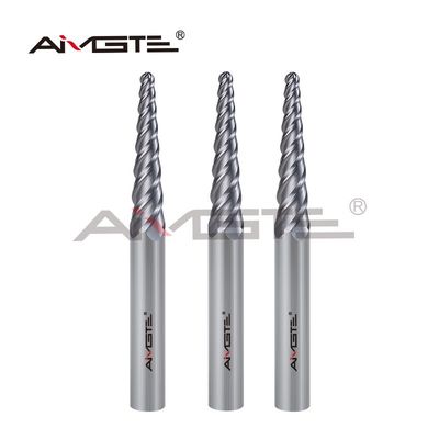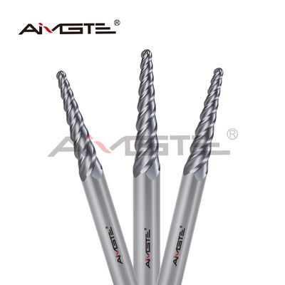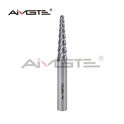 एक 4-बांसुरी टेपर बॉल-नाक एंड मिल एक सटीक ठोस कार्बाइड कटिंग टूल है जो 3डी कंटूरिंग, प्रोफाइलिंग और फिनिशिंग कोमल, गैर-लौह सामग्रियों में के लिए बनाया गया है। टेपर डिज़ाइन (घटा हुआ शैंक व्यास) गहरी-गुहा मशीनिंग के लिए कठोरता को बढ़ाता है, जबकि बॉल-नाक टिप चिकनी, घुमावदार सतह फिनिश को सक्षम बनाता है।