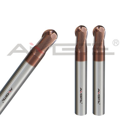 The AMG 2-flute carbide ball end mill is a precision cutting tool designed for 3D contouring, mold/die machining, and finishing operations in hardened steels (up to HRC 60+). Its ballnose tip allows for smooth, detailed work on complex surfaces, making it ideal for high-performance CNC milling in demanding applications.